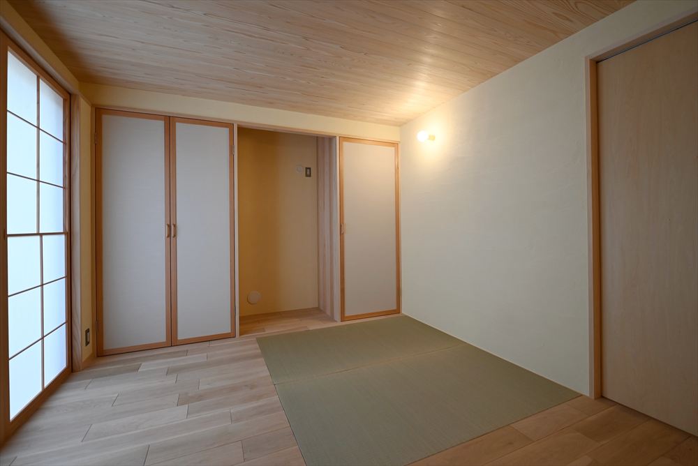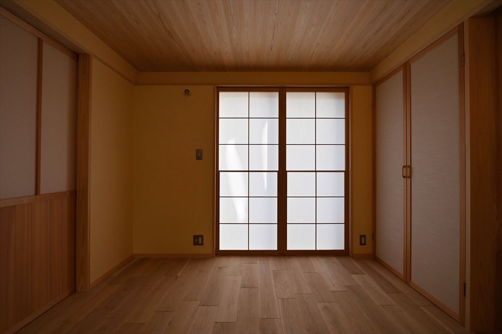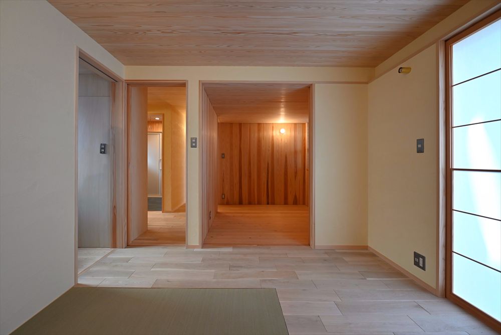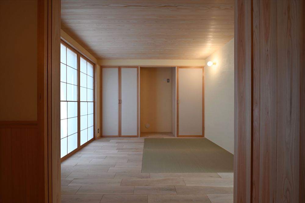 床:国産ナラ本実板張り、杉本実板張り、畳敷設計・監理:一級建築士事務所 神谷スタジオ